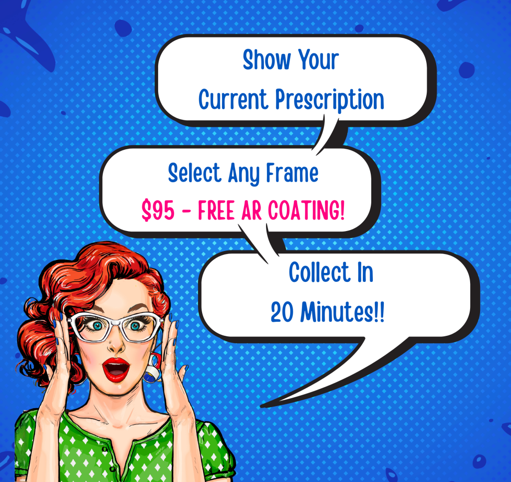 Glasses made in 20 minutes for most prescriptions.